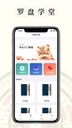 5、罗盘学堂,软件设有专业风水学堂,传播风水传统古典文化知识和罗盘知识等。