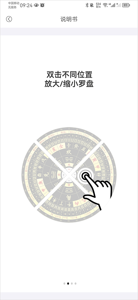 1、多种操作手势,单指转动罗盘,单指双击调整罗盘,双指拖动罗盘,双指捏合缩放。