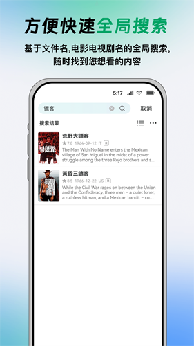 强大的搜索功能,可轻松在应用中输入关键词查找影视播放。