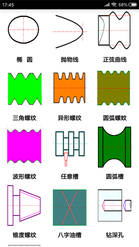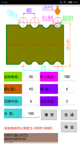 5、包含多种常见零件结构,可快速计算出切点坐标并实时生成程序,同时提供刀尖补偿功能。