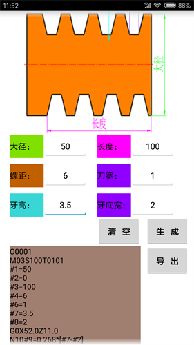 4、动态刀尖半径补偿算法,输入基本尺寸即可自动生成带补偿值的完整加工代码。