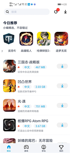 4、 【专业的点评与推荐】这里聚集了众多资深的游戏人,为你推荐时下热门游戏,提供游戏测