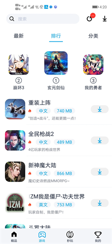 2、发现热门的游戏的排行榜单找寻*受玩家欢迎的游戏资源