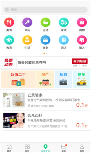 1、参与生活分享、交友、租房、二手交易、招聘等活动。