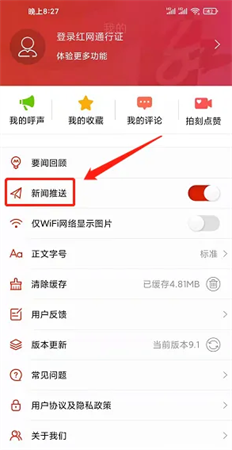 3、在【我的】页面中,选择【新闻推离艳送】栏目。