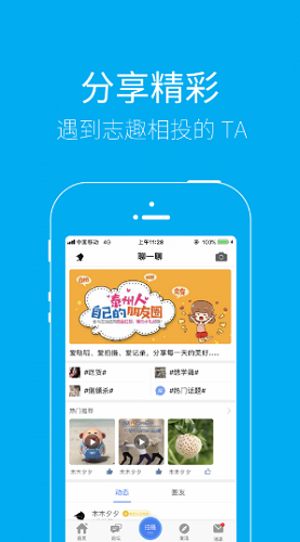 2、分享精彩:分享日常生活精彩瞬间,遇到志趣相投的他,如果你喜欢对方发的状态,可以一键进行关注,也可以为她点赞,另外在社交广场聚集了超多有颜值的小姐姐。