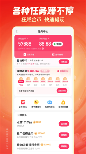 在快手极速版看视频还能赚金币,看的多赚的多!