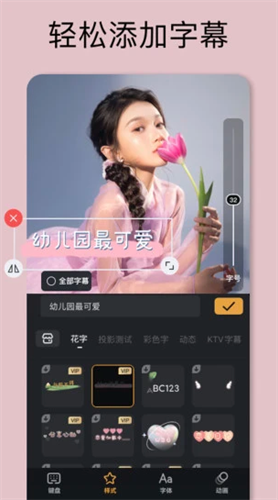 「文字」花字、标题、跳动字幕、缤纷气泡...还支持多种中、英字体和文字样式