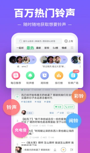 2.火热铃声实时更新,把握时2265尚风向标,网罗分享量超高的铃声,汇总个性又流行的彩铃(炫铃)。