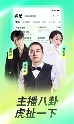 虎牙直播平台官网手机版是款非常实用全面的影视资讯平台,在这里以游戏为主要的直播内容,不仅会有很多热门的游戏大神会在这里进行直播操作,带飞全场,各种热门的赛事也会有专业的游戏战队在这里秀技术。各大知名游戏主播齐聚于此,为大家讲解英雄联盟、王者荣耀、绝地求生、和平精英等深受玩家喜爱的游戏,可谓是激情澎湃啊,软件还内置了很多的游戏视频内容,直播回放、游戏录播等等都能够给你目不暇接的观赏体验,顶级的赛事转播让人热血沸腾,万人互动,支持你的主队,赢得胜利。感兴趣的小伙伴还在等什么,快来加入我们吧!