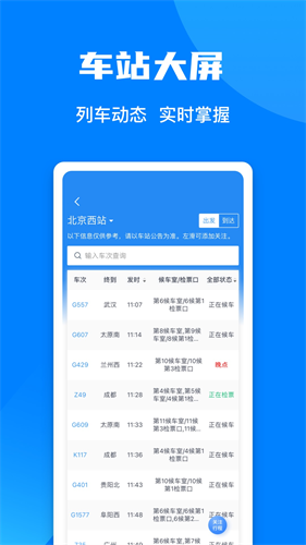 4、快速查询购买国内高铁票及火车票,无论身处何处,随时随地查询高铁及列车信息。