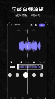 3、 音频提取:转音频,支持一键从中提取原声音频,进行音乐裁剪。