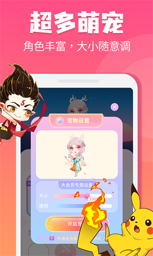 宠物还可以随意调节大小、透明度,不用担心影响你打游戏看电影;
