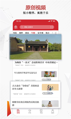 保密观app是一款可以学习保密知识、保密技能的手机应用软件,及时发布有关国家秘密、工作秘密、商业秘密、个人隐私等秘密信息保护方面的新闻动态,提供保密专业图书、期刊、音频、视频等内容丰富的保密专业资源,相关单位会这这里发布考试信息,根据账号信息就能参加考试,还可以查看自己的历史错题,巩固自己的保密知识,不仅如此,保密观App还具有保密考试、知识速查、投票调查、在线直播、互动交流等功能,为广大用户提供专业知识资源平台,是大家了解保密知识常识、学习保密技能的移动工具,可以随时随地在线上课堂解锁各种保密相关的精品课程,有需要的话就来下载使用吧。