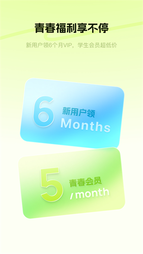 会员福利好:新用户送3个月会员,在线听歌可自动领取一天会员,会员与正式版通用。