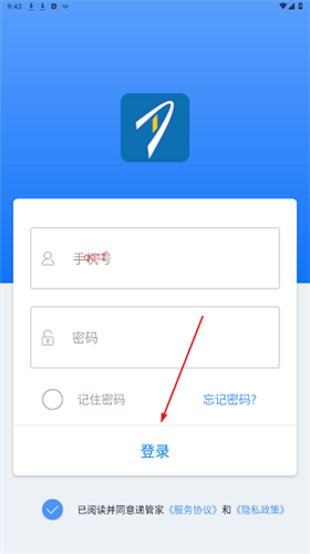 1、进入递管家app后,输入自己的手机号和密码,之后就可以登录了;