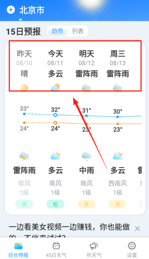 4、浏览未来15天的天气预报,了解未来气候变化,从容应对日常安排与活动计划。