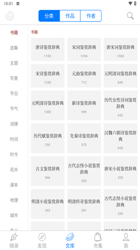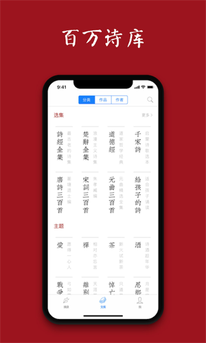 2、突破单一的朝代、作者分类,结合选集、主题、写景、节日节气等多维度划分,满足用户从不同角度赏析诗词的需求,让查找更具针对性。
