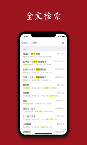1、内容丰富:涵盖经典唐诗宋词,支持全文检索。