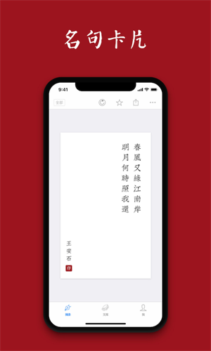 2、名句卡片:精选数千条诗词名句,卡片式切换。