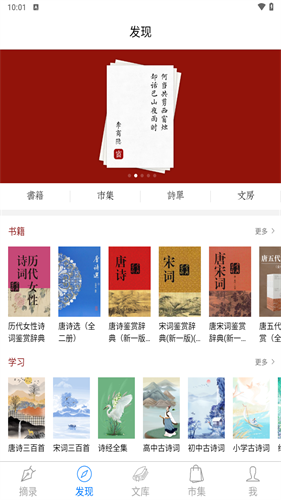 3、发现界面可以查看诗词书籍