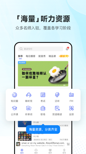 4、兴趣学习:有声读物、名人演讲、公开课、少儿英语、影视英语等丰富资源。
