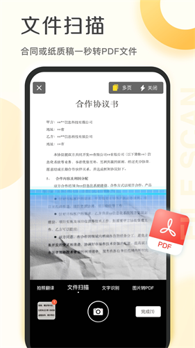* 支持超清扫描单张、多张文件、书籍、笔记等内容,快速生成PDF扫描件,扫描后可调整对比度、滤镜等;
