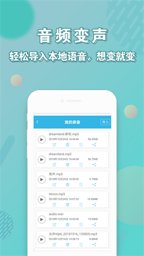 支持导入多种音频格式变声,mp3、wav、m4a等