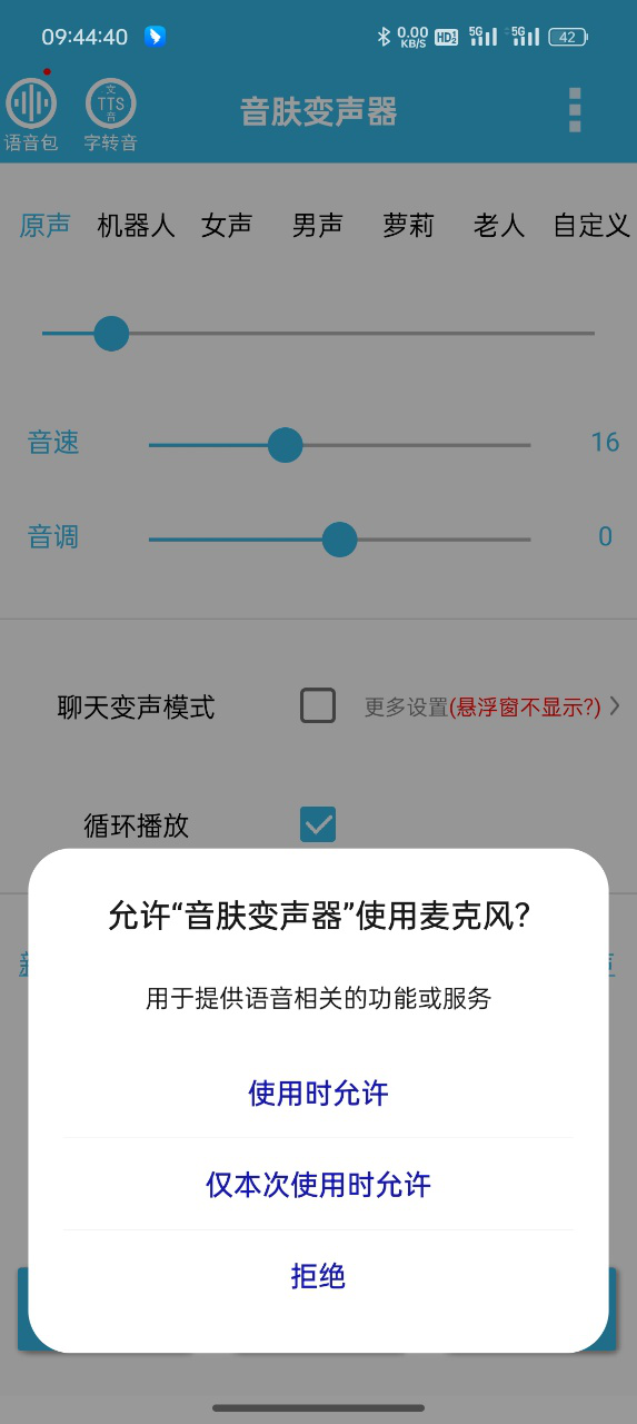1、进入App后,先在设置中开启【聊天变声模式】和【循环播放】功能;
