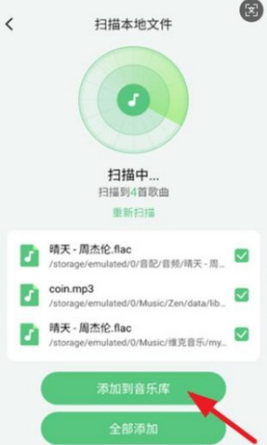 3、扫描出来的歌曲直接添加歌曲库,各类格式都能够支持。
