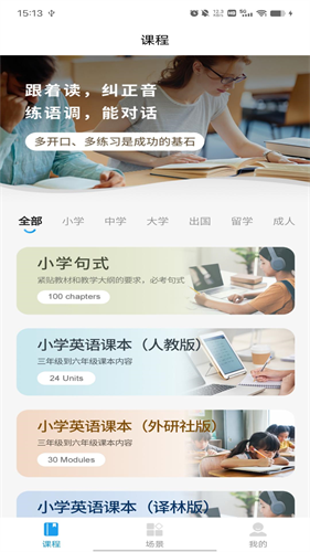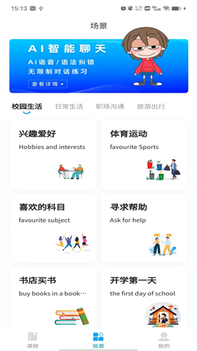 4、包含200+实用对话模板,覆盖旅行、商务、社交等场景,支持语音实时评测。