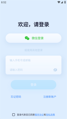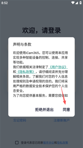 3、输入账号密码之后勾选同意协议然后点击登录。