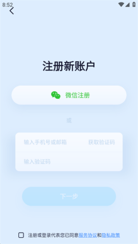 4、没有账号的用户可以先注册账户,支持微信注册、手机号码注册或邮箱注册。