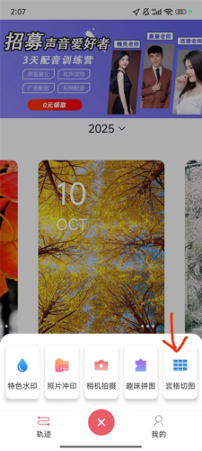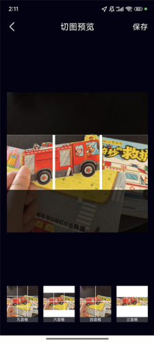 3、可以在这里选择宫格切图,这里以三宫格为例,选择合适的图片位置,点击保存。