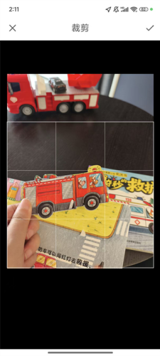 2、导入图片后,裁剪到合适的大小。点击右上角对钩。