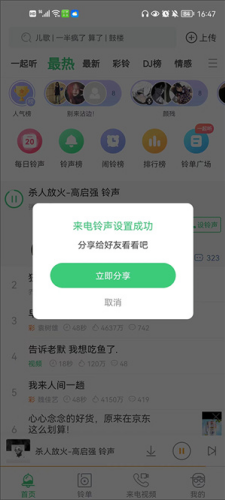 1、最热,最新,分享,地域,彩铃榜单,第一时间获取你最想要的铃声。