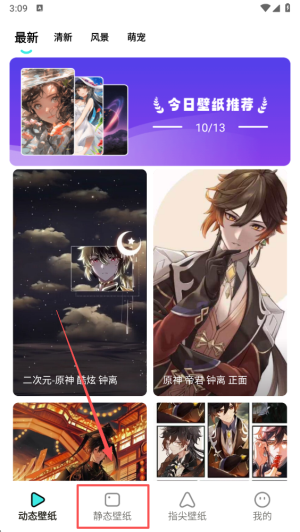2、选择“静态壁纸”选项,进入丰富多样的壁纸库,开始寻找您喜欢的图片。