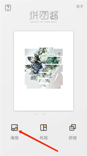1、打开软件,提供海报、布局、拼接等不同功能,以海报为例。