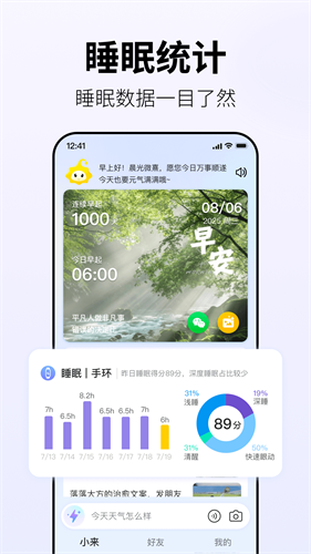小来早晚安app是一款集打卡记录、社交分享与生活管理于一体的多功能生活应用,它巧妙地将日历天气、习惯追踪和社区互动融合在简洁的界面中,不仅记录着用户的作息轨迹,还通过累计打卡天数、成就徽章等激励体系,让坚持变得有趣而有动力。应用内置的天气提示会贴心显示当日温度变化,搭配精心设计的励志语录和精美壁纸,让晨间例行变得充满期待。小来早晚安app这款应用有着完善的日历系统,可以标记重要日程,设置习惯养成计划,还能生成精美的月度打卡报告,海量的社交素材库持续更新,从晨间励志语句到晚安治愈图文,满足不同用户的分享需求,遇到特殊节气或节日时,应用还会推出限定版打卡背景和祝福语,增添生活情趣。感兴趣的用户不妨下载体验一番吧。