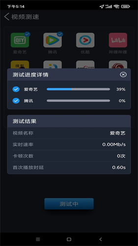 在自动测速功能中,我们可以选择进行宽带测试、网页测试、视频测试、文件下载、游戏测试多个项目,后台会给出预计消耗流量和所用时间数据,使用宽带测速时,预计消耗流量会显示为 0.如果使用移动数据,则会显示为真实的消耗量。以我这次测试为例,显示为 1.5G,如果流量不多的话建议少测试。在底部,其实 APP 也进行了提醒 " 自动测速将消耗较多流量,请谨慎选择测试内容 "。