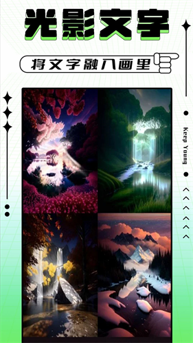 输入文字描述,AI 自动生成对应风格的精美图像,支持多种艺术风格,实现“一句话画一幅画”的智能创作体验。