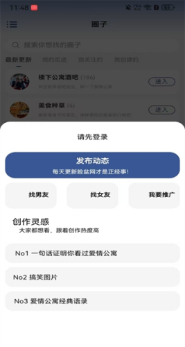 4、提供找男/女友的功能,在分享发布中选择找男友或者找女友,分享自己的动态。