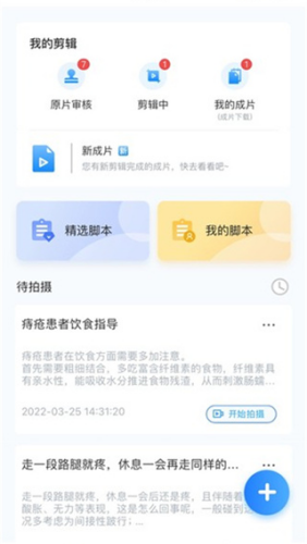 2、首页有照片审核,剪辑成片,我的成片等多样化功能模块。