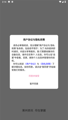 1、获取最新版本应用程序安装包,初次启动需完整阅读并确认接受隐私政策条款。