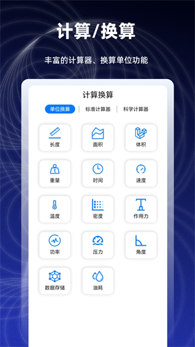 14大类单位换算,涵盖长度、面积、体积等生活常用及科研教学需求,让换算无处不在。