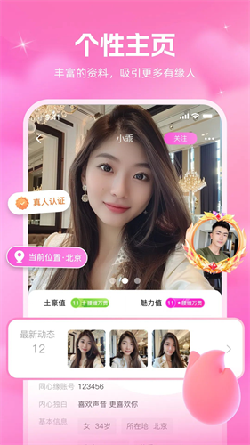 用户可展示丰富的个人资料,包括基本信息、内心独白、最新动态等,有助于吸引更多有缘人关注。
