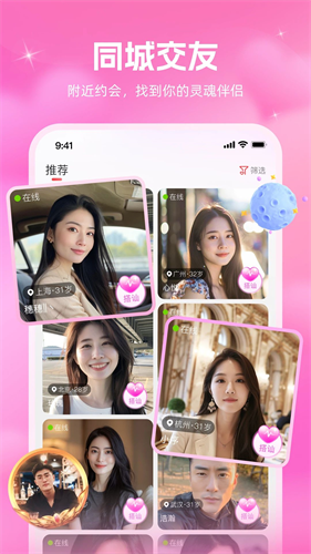 提供陌生人偶遇的机会,用户可随时随地与异性开启聊天,拓宽社交圈。