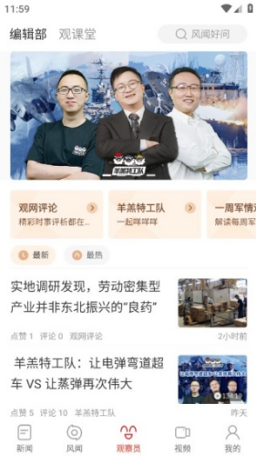 3、进入观察员功能模块后,可以获取最新的观察课堂内容,并查看其他网友的评论。