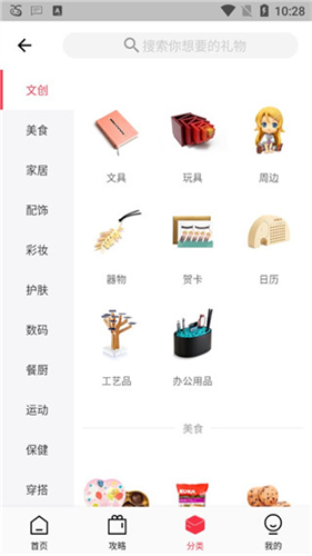 它有着极为详细的分类类型,比如文创、美食、家居、配饰、彩妆等等。