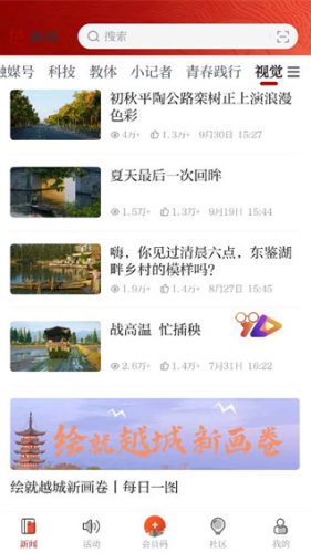 3. 您可以通过视觉特色栏目,欣赏到越城的城市美景与民俗文化内容。